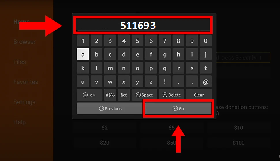 3. Type the following code exactly as shown here: 511693 and Click “GO”