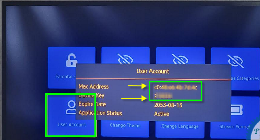 NOTE: The app has a 7-day trial period; when it expires, go to https://iboplayer.com/dashboard , Log in with the MAC Address and Device Key from your app, then pay the one-time fee.