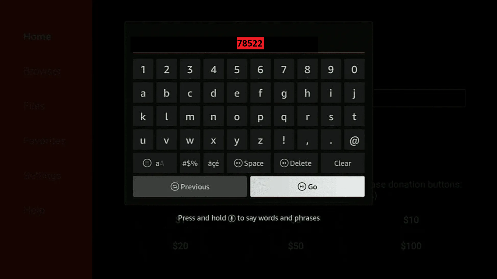 Step 1: Go to the URL area in Downloader and type in https://www.iptvsmarters.com/smarters.apk or 78522 then click Go